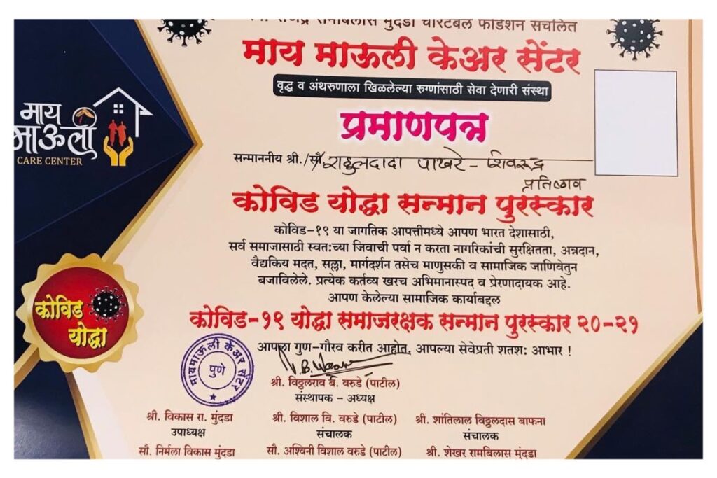 सशक्त महिला मंच च्या वतीने दरवर्षी दांडिया महोत्सव पार पडत असतो, समाजामध्ये आपल्या कर्तृत्वाच्या जोरावर आपल्या कुटुंबाचे स्थान उंचीवर नेण्यासाठी अहोरात्र कष्ट करणाऱ्या सर्व माता माऊलींना “आदर्श दुर्गा – २०२४“ पुरस्काराने पुरस्कृत करण्यात आले. माझ्या आईस “आदर्श दुर्गा – २०२४“ पुरस्काराने सन्मानित करण्यात आले, आईचा सन्मान विधानपरिषदेचे आमदार योगेशजी टिळेकर व नगरसेविका रंजनाताई टिळेकर यांच्या हस्ते करण्यात आला.